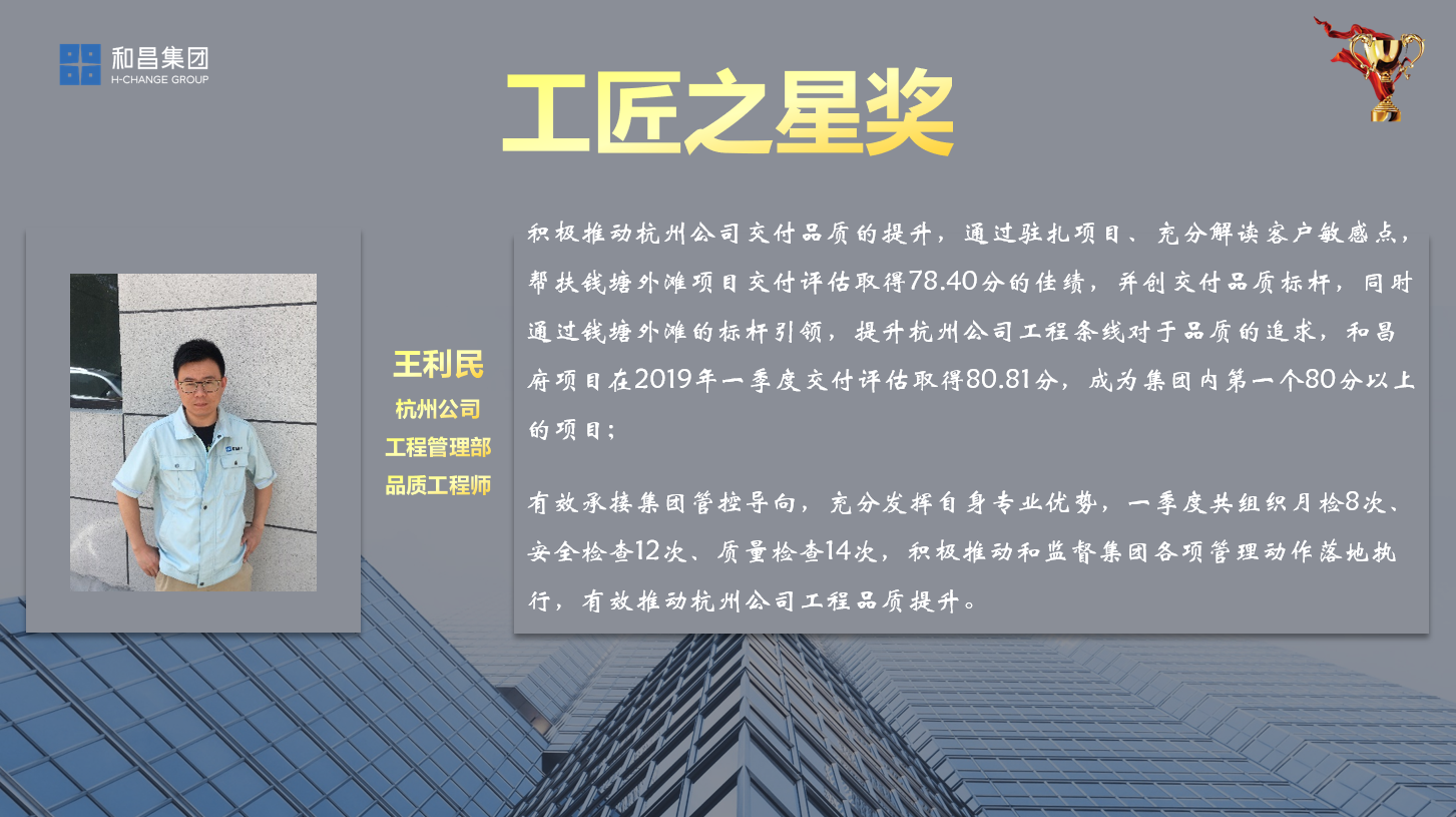 杭州公司工程管理部品質(zhì)工程師王利民