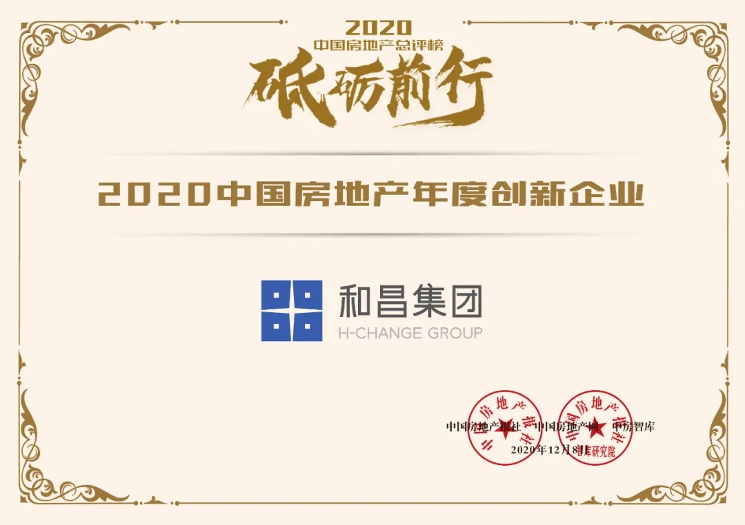 穩(wěn)健效益運(yùn)營(yíng),開放多元?jiǎng)?chuàng)新,12月8日,和昌集團(tuán)榮獲“2020中國(guó)房地產(chǎn)年度創(chuàng)新企業(yè)”獎(jiǎng)。