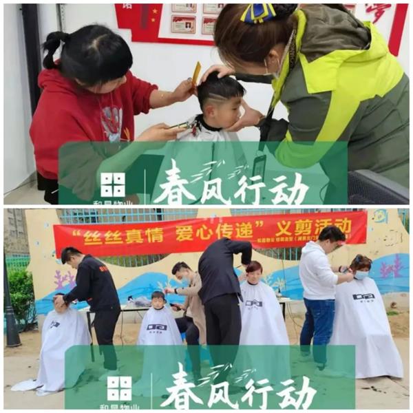 各位和昌物業(yè)“托尼”老師們,在園區(qū)公益理發(fā),這邊剪短一點(diǎn),那邊耳朵露出來,頭頂再做個(gè)造型,希望和昌物業(yè)的芳鄰們2021年事事順?biāo)?,鴻運(yùn)當(dāng)頭。