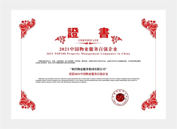 和昌物業(yè),榮獲中國物業(yè)百強榜