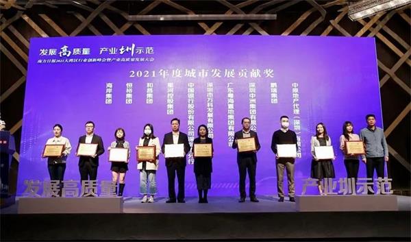 2021年12月17日,以“發(fā)展高質(zhì)量 產(chǎn)業(yè)圳示范”為主題的南方日?qǐng)?bào)2021大灣區(qū)行業(yè)創(chuàng)新峰會(huì)暨產(chǎn)業(yè)高質(zhì)量發(fā)展大會(huì)在深圳灣木棉花酒店舉行。和昌集團(tuán)榮獲本次峰會(huì)頒發(fā)的“城市發(fā)展貢獻(xiàn)獎(jiǎng)”。