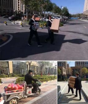 GB704租戶在裝修期間,管家白果積極做好現(xiàn)場(chǎng)的裝修監(jiān)管工作,因租戶業(yè)務(wù)繁忙不經(jīng)常過來,管家總是拍視頻發(fā)給租戶現(xiàn)場(chǎng)的裝修進(jìn)度,說有管家在自己很放心!租戶一個(gè)電話需要管家?guī)兔λ推桨遘?,送螺絲刀,接收快遞,管家為不影響業(yè)主使用,總是第一時(shí)間趕過去。一次,是貨車過來運(yùn)送家具,業(yè)主一個(gè)電話,管家立馬就借平板車給送過去了,送過去之后管家并沒有送完離去,而是去大廳候著,一是電梯沒有做防護(hù)交代師傅搬運(yùn)時(shí)小心,二是看看有沒有需要幫忙的。家具搬運(yùn)到電梯前,業(yè)主一臉的不知所措,準(zhǔn)備讓工人找繩子抬到樓上,管家聽到后在想電梯能否裝得下,在向業(yè)主了解到家具的高度及重量后,管家又立即和秩序主管對(duì)講尋求幫助,孫主管帶了5名隊(duì)員過來幫忙,在和秩序主管溝通后,電梯的高度剛好能容下家具立起來的高度,不過要非常小心,因?yàn)楦叨瓤臻g確實(shí)是不大,秩序隊(duì)員、業(yè)主及現(xiàn)場(chǎng)工人的齊心協(xié)力下,終于讓家具乘坐電梯運(yùn)到了樓上,并幫忙抬到了屋里。