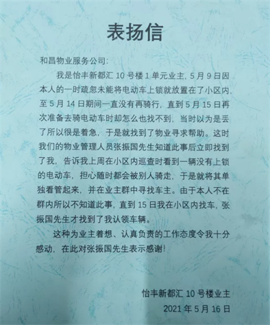 又收到幾封業(yè)主的表?yè)P(yáng)信……